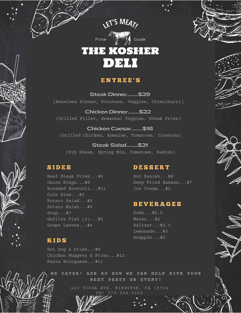 Tucked away in the heart of Kingston, Pennsylvania, The Kosher Deli has quietly become one of those local treasures that people talk about like a well-kept secret. The entrance may be a bit unconventional-there’s an additional way in through the rear at lot 425 Tioga Ave, Kingston, PA 18704-but once you step inside, you instantly feel that mix of nostalgia and homestyle comfort that only a true deli can deliver.